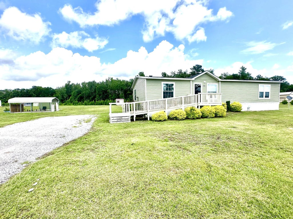 Built in 2022, this 3 bed, 2 bath home offers 1,456 sq ft of comfortable living on 4 peaceful acres. Enjoy a spacious living area, a large master suite with oversized bath, and a well-maintained interior in great condition. A wheelchair ramp and steps provide easy access to the front entrance. Property includes a tornado-certified storm building secured on a concrete pad, carport, and outbuilding. Nestled in a quiet country setting with ample yard space--perfect for gatherings or relaxing outdoors. Don't miss this serene slice of country living! Buyer responsible for all information pertinent to them such as but not limited to acreage, restrictions, sqft, ect.....