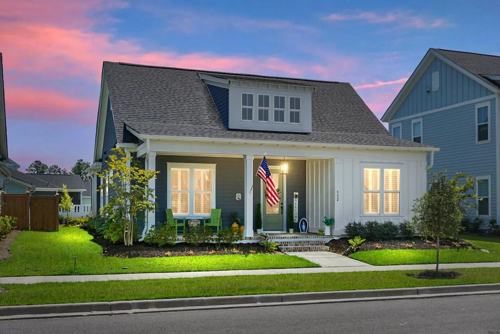 Welcome to 332 Clearpath Drive, a true gem in the heart of Midtown at Nexton--recently recognized as the #1 Master-Planned Community in the Nation. This remarkable single-story Cape Cod-inspired residence offers over 2,100 square feet of thoughtfully curated living space designed for those who value quality, comfort, and elevated style. Built-in 2024 and further enhanced by a long list of premium owner upgrades, this Hutchinson floor plan showcases a seamless blend of timeless elegance and modern sophistication. Step inside to discover a home where every detail has been considered. Soaring 10-foot ceilings, wide-plank luxury flooring, and custom interior paint create a bright and welcoming ambiance throughout the space. The expansive open-concept living area features refined picture-frame molding, a cozy gas fireplace, and a dramatic three-panel sliding glass door that opens to a screened-in porch with ambient lighting, providing the ideal backdrop for entertaining or quiet evenings at home. At the center of it all, the chef's kitchen is a masterpiece in both function and form. A massive island with integrated outlets anchors the space, complemented by crisp white cabinetry with crown molding, a striking herringbone backsplash extending to the ceiling, and beautiful quartz countertops. The bold navy-blue island adds a designer touch, while high-end stainless-steel appliances, including a 5-burner gas range and custom vent hood, make this kitchen as practical as it is beautiful. A walk-in pantry and soft-close drawers provide ample storage and convenience. The luxurious primary suite is a tranquil retreat featuring a spa-inspired bathroom with a frameless glass shower and bench, dual quartz vanities, and a custom-designed walk-in closet with direct access to the laundry room. This layout is both functional and refined. Two additional guest bedrooms, each with walk-in closets and plantation shutters, share a stylish full bathroom enhanced by designer finishes and natural light.