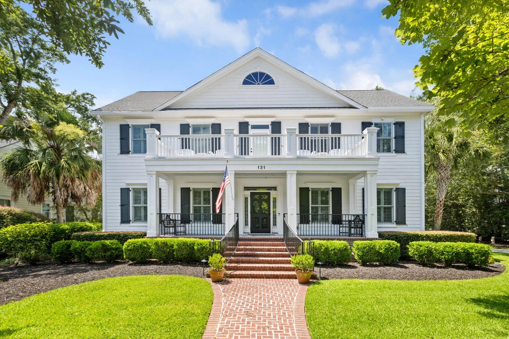 Welcome to 131 Balfour Street, a meticulously crafted home located just steps from the Daniel Island Club and all the sought-after amenities Daniel Island Park has to offer. Set on a picturesque street known for its Southern charm and established tree canopy, this residence blends timeless architecture with high-quality construction and thoughtful design.From the moment you arrive, the double front porches exude a warm, Lowcountry welcome. Inside, Brazilian cherry hardwood floors, dramatic crown molding, and elegant arched transitions create a sense of refined openness. The grand foyer highlights the impressive home office--complete with custom built-ins, and rich architectural detailing--offering a private and sophisticated workspace.The formal dining room sets the stage for memorablegatherings and flows effortlessly into the gourmet kitchen. Designed for entertaining, the kitchen opens to a spacious great room, creating a seamless living space filled with natural light and timeless finishes. The living room features a charming wood-burning fireplace, perfect for creating a warm and inviting atmosphere. The primary suite is conveniently located on the main floor and features a generous walk-in closet and a spacious ensuite bath. Upstairs, you'll find three well-appointed bedrooms along with a large flex/media room. A private guest suite separate from the main upstairs bedrooms is tucked just off the rear stairwell near the kitchen, offering an ideal retreat for visitors or multigenerational living. Step outside to enjoy year-round Lowcountry living. The huge screened-in porch overlooks a private, fenced backyard perfect for gardening, play, or peaceful relaxation. Enjoy the best of Daniel Island living with quality construction, an unbeatable location, and the charm and convenience that make this community one of Charleston's most desirable. Please contact the Daniel Island Club for all club details and available optional golf memberships. Buyer to pay a one-time neighborhood enhancement fee of .5% x sales price to Daniel Island Community Fund at closing and an estoppel fee to the Daniel Island Property Owners Association, Inc. Buyer/buyer's agent to verify anything deemed important such as square footage, flood zone, club memberships, school zone, etc.
