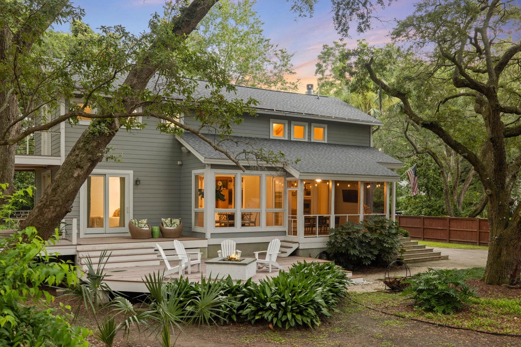 Contract has a home sale contingency - Please continue showing for backup offers. Welcome to 2217 Ramsay Street, a hidden gem nestled at the end of a quaint street in Riverland Terrace, offering expansive views of the 11th and 12th fairways of the Charleston Municipal Golf Course and the Stono River beyond. This wonderful home sits on a maturely landscaped 1/2-acre lot shaded by grand live oaks, with ample room to add a pool or garage. Inside, you'll find a thoughtfully designed three-bedroom layout, with each bedroom featuring its own en suite bath and walk-in closet. The open concept kitchen offers granite countertops, an oversized island, stainless steel appliances, and easy flow into the dining area and screened-in porch, perfect for indoor-to-outdoor entertaining. The main living area is truly striking, featuring two-story vaulted ceilings with exposed beams, a wood-burning fireplace and built-in cabinetry. A spacious main level primary suite has access to a private westward facing porch that perfectly captures sunset views. The luxurious bath offers a stainless steel soaking tub, marble counters, a newly tiled shower with skylight and a large walk-in closet. Upstairs, a generous loft space makes an ideal media room or reading nook, along with two additional en suite bedrooms, each with access to a private deck. A separate spiral staircase takes you to the office space with a built-in desk and bookshelves. Step outside to an expansive Ipe wood deck with a built-in gas fireplace, perfect for enjoying Charleston evenings. The shaded backyard is ideal for relaxing, all while overlooking breathtaking golf course and river views. Riverland Terrace offers a charming mix of local shops, restaurants, a movie theater, along with community features like the Medway Community Garden, neighborhood boat landing and the recently updated waterfront Plymouth Playground. This is a rare opportunity to own a truly special Lowcountry home in one of Charleston's most established and beloved neighborhoods.