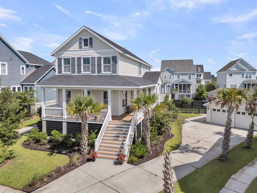 A charming Daniel Island South home with wrap around front porch, open floor plan and impressive backyard with fire pit and room for a pool - perfect for your indoor/outdoor Lowcountry lifestyle. Filled with natural light, the first floor offers spacious kitchen with large island, walk in pantry, family room with shiplap details and gas fireplace, convenient first floor guest room with full bath, plus home office with french doors. Retreat upstairs to your master suite with modern tub and glass shower, two additional bedrooms with private baths, loft for recreation and multiple walk in storage closets throughout! Located in Edgefield Park section on a cul de sac with green space in the front and access to endless amenities inc 3 community pools, playgrounds, parks & walking/biking trails.Enter the first floor to open concept family room with coastal shiplap details, large open kitchen with large island and a dining space surrounded by windows with plentiful natural light. A walk in pantry as well as wine fridge provides adaquate kitchen storage. First floor also offers a convenient and private guest room with full bathroom and home office with french doors. Or utilize this bonus space for kids playroom or exercise space. Multiple walk in coat closets provides more flexible storage. A screened porch leads to a fit pit area for enjoying lowcountry nights and a huge fenced backyard provides ample space for outdoor living and plenty of room for a pool. This is a rare .24 acre lot on Daniel Island South. The second floor offers primary bedroom suite and two bedrooms each with its own bathroom en suite. Plus, a loft rec space, laundry room, and large walk in storage closet. All bedrooms feature modern ceiling fans. A long driveway leads to a detached two car garage. Daniel Island community offers access to endless amenities including three community pools, tennis courts, pickleball courts, playgrounds, walking trails, boat ramp, and community events. Note buyer pays one time .5% community enhancement fee to the property owners association at closing.