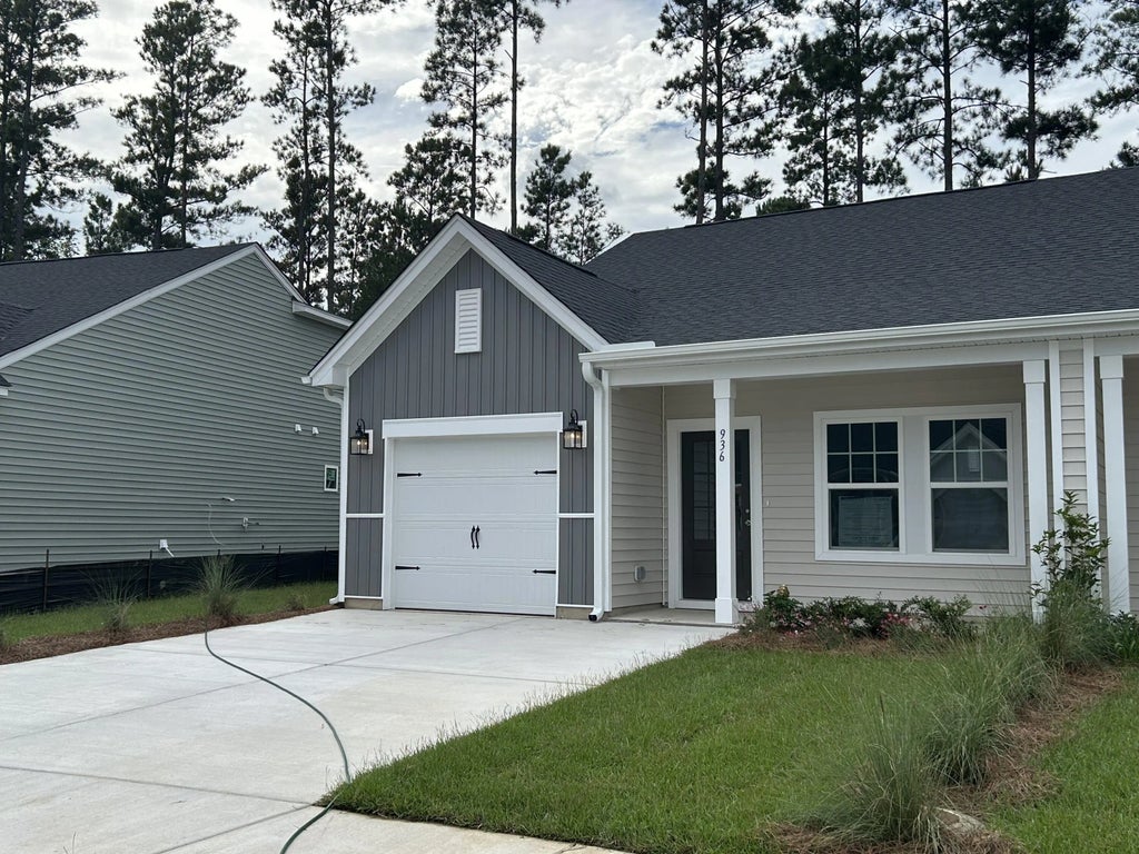 Single level duplex home on large lot with trees behind. Brand new warrantied home that invites you into luxury with 9 foot ceilings and wide plank flooring. Gorgeous open main living is tucked away in the back of the home with ample room for dining and living. Up to the minute kitchen features quartz countertops, matte gold fixtures and an elegantly serene ceramic backsplash to blend with quality 42'' upper cabinets. Sunlit, primary suite overlooks sizeable yard and is lined in back with a tree buffer. Step into spa style with zero entry shower, dual vanities and a walk-in closet. At the front of the home another spacious bedroom with walk-in closet and full bath offers guests privacy. Extra deep single car garage is attached. Partially covered patio in back and front porch.