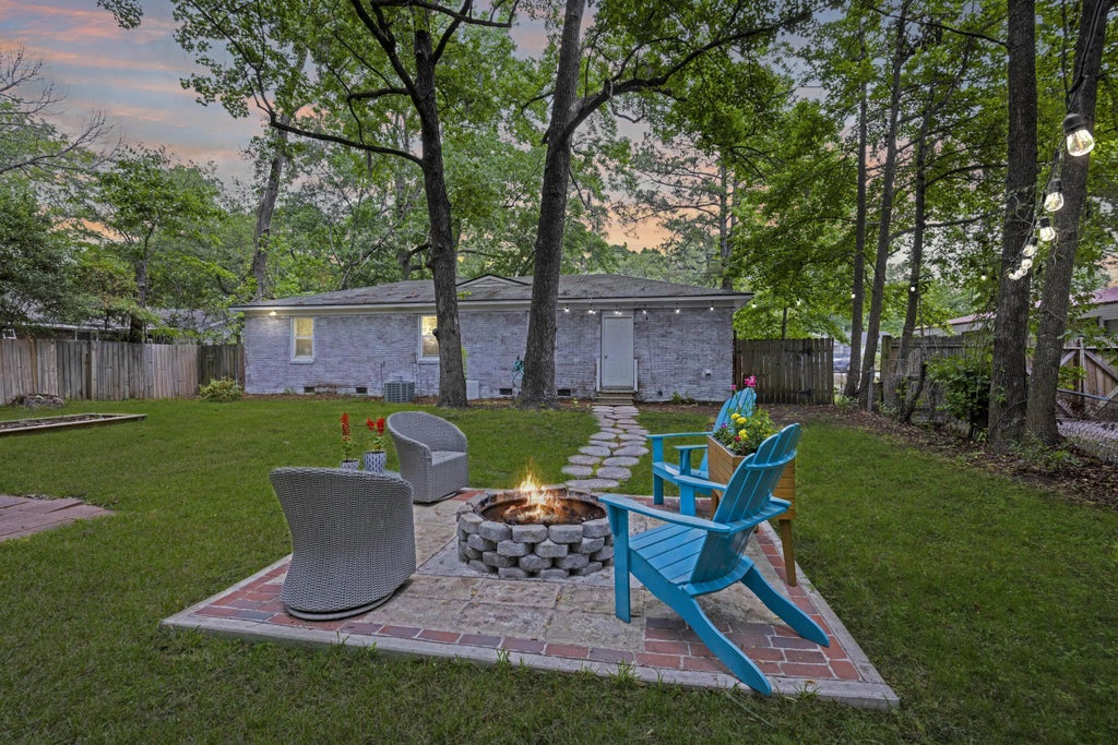 Outside, the large fully fenced backyard is your personal retreat. Unwind around the built-in fire pit on the paver patio, grill out under the string lights, or garden in the raised bed plantersall surrounded by tall trees offering both privacy and shade. A detached shed provides additional storage, and the carport keeps your vehicle protected from the elements. (The laundry closet is within the shelter of the carport.)