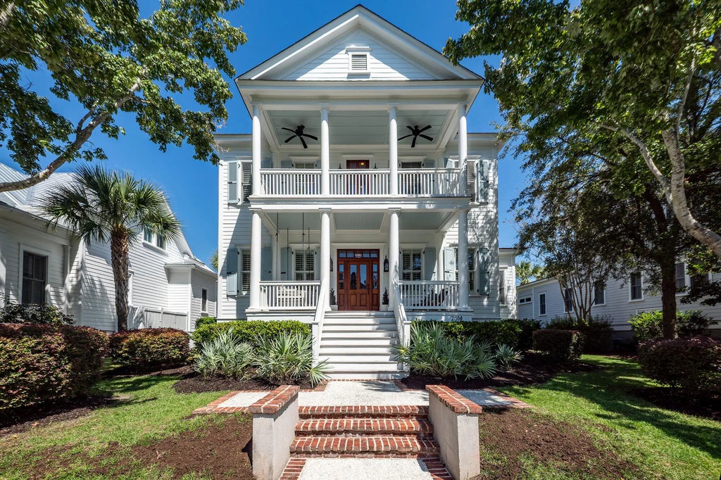 Welcome to this southern charmer situated right in the heart of Daniel Island next to beautiful Smythe Lake and just a half block walk to Daniel Island School. A one-of- a-kind gem, built by Southcoast Builders which boasts five bedrooms in the main house plus a sixth bedroom in the FROG. This custom build has high quality features throughout: solid mahogany exterior doors, custom closets, chestnut kitchen cabinets, and a beautiful main hall built-in bookcase, to name a few. A recent full renovation of the primary bath features beautiful tile and a huge free-standing tub. Ten-foot ceilings on both levels provide a spacious living experience, and custom wainscoting/trim throughout are truly elite. Kitchen updates include new backsplash, quartz countertops, and new appliances. See notes: