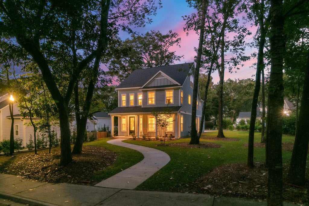 Beautifully maintained three-story home in The Ponds, ideally situated with conserved green space and the historic farmhouse (available for events) and Coffee Cottage at the front, and Bryant Park directly behind. This home offers four bedrooms, two and a half bathrooms, and a detached two-car garage connected by a breezeway. Flexible spaces, including a formal room on the first floor plus loft on the second floor, allow for endless possibilities such as guest rooms, home offices, playrooms, or media rooms.From the beautifully landscaped front yard, a curved walkway shaded by mature trees leads to the inviting full front porch with views of the green space. Inside, the foyer rises dramatically with sightlines all the way to the third floor, filling the home with light and openness. Durable laminate flooring runs throughout the home for easy maintenance, while large windows keep every room bright and welcoming.